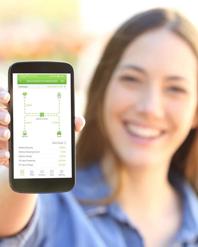 逆變器采用LCD遠(yuǎn)程控制,RS485/RS232通訊接口,便于遠(yuǎn)程通信和控制。此外,逆變器還搭配了智能監(jiān)控系統(tǒng),用戶可以通過(guò)智能終端APP隨時(shí)隨地查看系統(tǒng)運(yùn)行狀態(tài)。