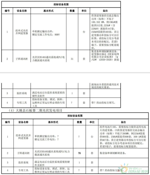 (4)大姚縣石板箐二期光伏發電項目:在接到招標方書面發貨通知后,投標方以不大于45天的發貨進度供貨,供貨時間為2023年6月30日供貨完畢。供貨地點為云南省楚雄市大姚縣大姚縣石板箐二期光伏發電項目現場指定地點。