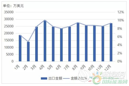 “難”上加“南”的2019,美國、印度兩大光伏市場的301和BIS認證對中國光伏亦假亦真的招式,并未阻擋住中國制造的強大攻勢。 以陽光、錦浪、正泰領先的逆變器企業合力拿下美國4.74億美元逆變器市場份額,2019年四季度開始,中國對美國逆變器出口額月均更是超過5000萬美元。面對印度市場的巨大潛力,中國光伏企業也加速以強大的品牌和先進的技術挺進市場,全年出口金額接近1.5億美元。 2019年光伏逆變器出口金額占比前九家企業