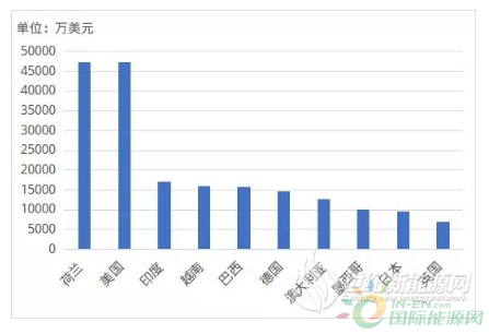 據歐洲光伏協會數據顯示,2019是近年來歐盟光伏發展最好的一年,當年歐盟地區新增裝機16.7GW,增幅達到104%。根據進出口海關數據顯示,荷蘭作為中國出口歐洲的重要中轉站,占據了16%的出口份額外,2019年中國出口逆變器到德國、英國等市場均在5000萬美元以上,同時下半年波蘭、烏克蘭等市場持續發力,為中國逆變器企業出海帶來新的動能。 在國內光伏市場陷入相對低迷之時,光伏企業出海視線紛紛轉移至“南”方,東南亞的越南、馬來,南半球的澳大利亞、南非,中南美洲的墨西哥、巴西光伏市場紛紛涌現中國逆變器的身影,中國主流逆變器企業正一路向“南”。海外傳統和新興市場并進,2019年逆變器出海已漸入佳境。 2019年光伏逆變器出口金額前十國