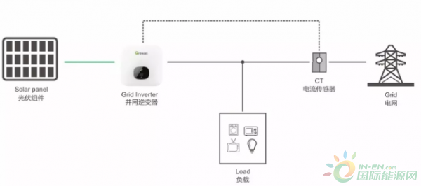 目前行業(yè)內有兩種解決方案:一是加防逆流裝置,在并網點安裝電表或者電流傳感器,當檢測到有電流流向電網時,降低逆變器輸出功率;二是加裝儲能裝置,也是在并網點安裝電表或者電流傳感器,當檢測到有電流流向電網時,逆變器輸出功率不變,啟動雙向變流器,把多出的電能儲存在蓄電池中,等光伏功率下降或者負載功率增大時再放出來。