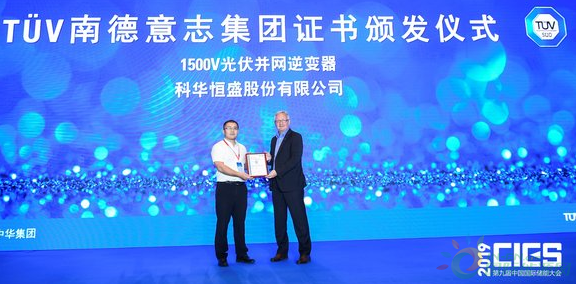科華恒盛1500V光伏并網逆變器獲TüV南德認證證書