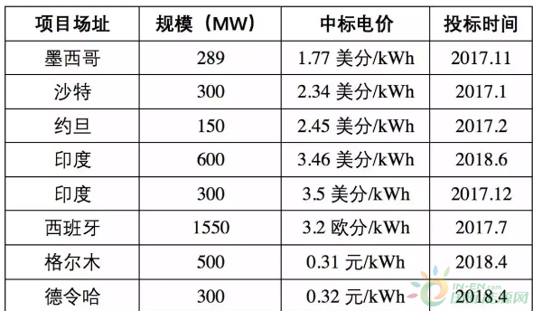 全球典型1500V光伏項(xiàng)目及中標(biāo)電價(jià)