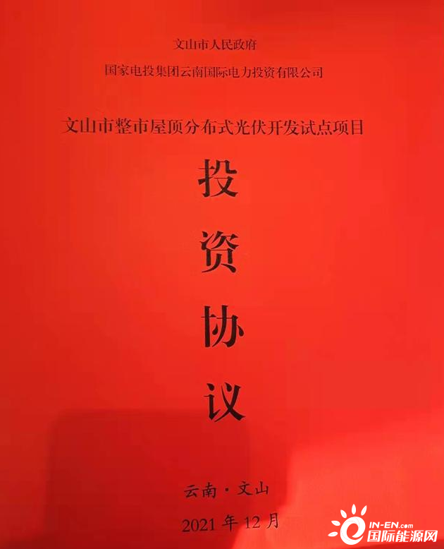 12月7日,國家電投云南國際電力投資有限公司(以下簡稱“云南國際”)與文山壯族苗族自治州文山市人民政府簽訂整市屋頂分布式光伏發電項目投資協議,標志著文山整市屋頂分布式光伏項目完全落地,即將進入項目實施階段。文山市市長王樹忠、常務副市長陳國平、副市長郭波出席簽約儀式。